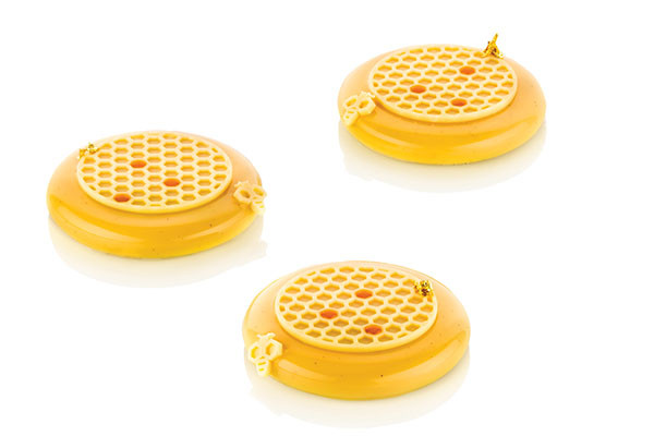 Alvéolé 3 è un tappeto in silicone per ricreare con accuratezza la trama delle celle esagonali che compongono l’alveare, e simpatiche piccole api per decorare i tuoi dolci