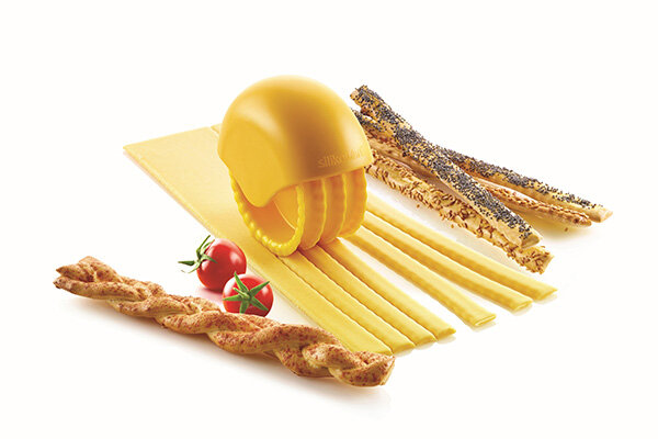 Il rullo BAKE 'N ROLL di Silikomart sarà il tuo alleato preferito in cucina! Stupisci i tuoi ospiti con sensazionali grissini fatti in casa oppure delle gustose tagliatelle. Prepara i tuoi impasti con farine particolari, spezie, semini... e in un batter d’occhio potrai realizzare dei perfetti antipasti e primi gustosi. Con il rullo BAKE 'N ROLL potrai tagliare in modo semplice e veloce i vostri impasti preferiti e creare delle ricette sempre diverse.