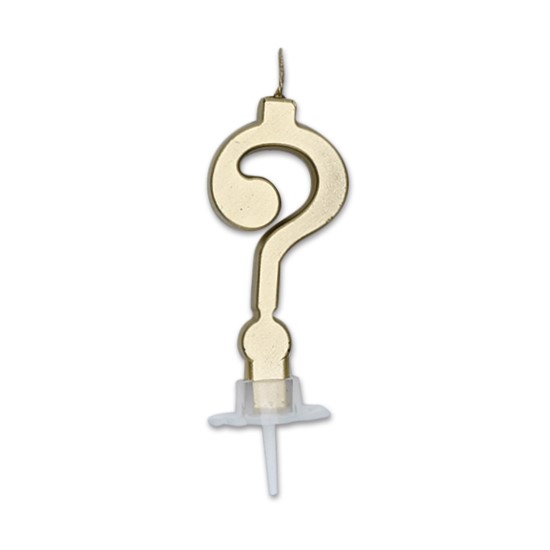 Una fantastica candela in 2D a Punto interrogativo per decorare la tua torta di compleanno.