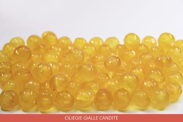 Le Ciliegie Intere Gialle Candite sono ideali per la realizzazione di dolci e per decorazioni. Sono Ciliegie intere da 2-2,5 cm cadauna in comode confezioni apri e chiudi.