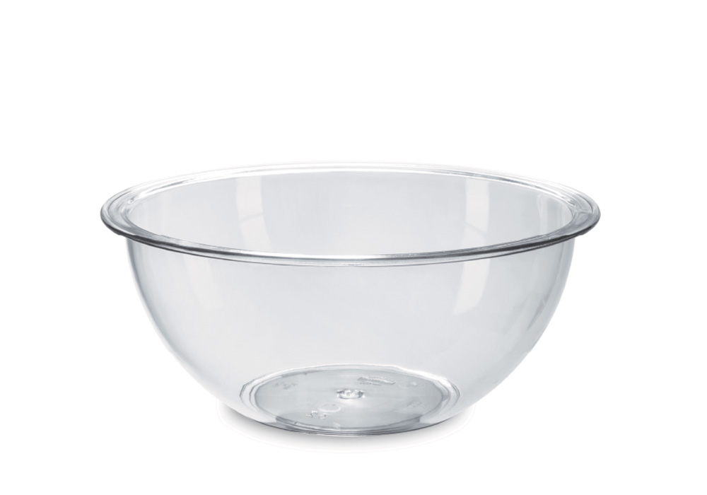 Ciotola in plastica trasparente, disponibile in diverse misure. E’ realizzata in materiale ABS certificata per il contatto con alimenti.