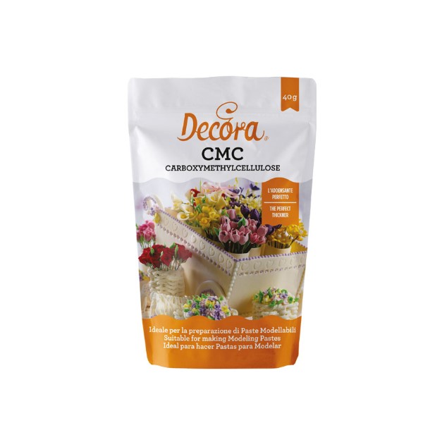 Carbossimetilcellulosa di sodio; additivo alimentare in polvere per la realizzazione di pastigliaggi, pasta di gomma e paste modellabili. Diluito con acqua, è perfetto come collante alimentare. Non ingerire tal quale. La pratica confezione salva freschezza apri e chiudi consente di conservare perfettamente il prodotto.