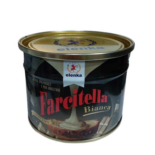 Farcitella Bianca Elenka è una crema da farcitura per pasticcerie e bar a base di cioccolato bianco. Per farcire torte, brioches, crepes, waffles, PANETTONI.