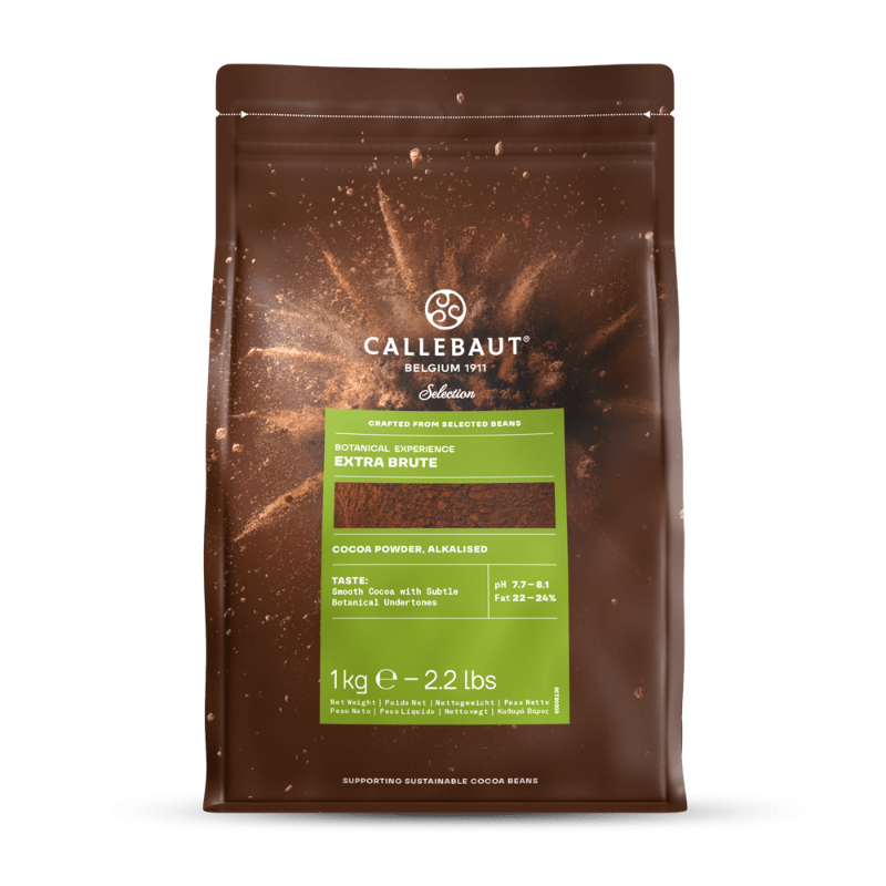 Cacao Extra Brute alcalinizzato della Barry Callebaut è un cacao in polvere dal colore rosso bruno intenso e luminoso, che è ideale per ricoprire i tartufi o per uno spolvero ambrato. Gusto e aroma particolarmente deciso. La sua composizione è 100% Cacao di cui il 22/24% di Burro di Cacao.