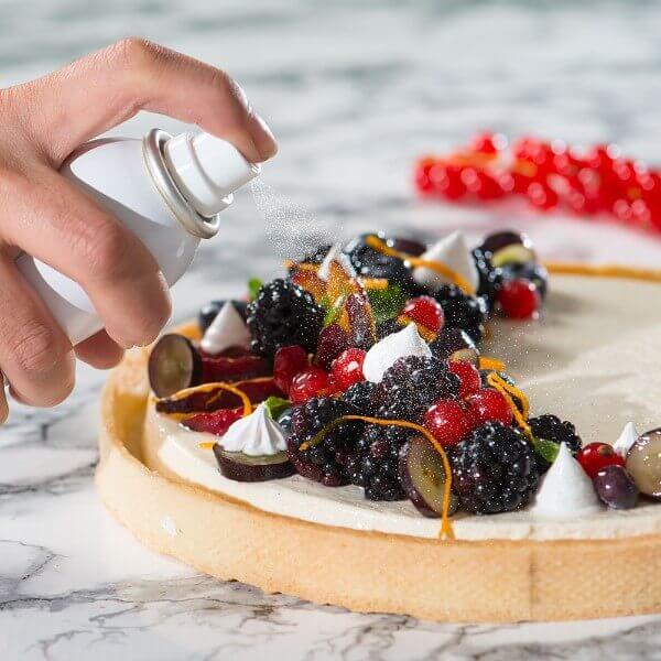Gelatina trasparente spray, pronta all’uso, dal sapore neutro, per proteggere e lucidare crostate, torte alla frutta, semifreddi, cialde di ostia e macedonie e per ravvivare il colore di ogni preparazione dolciaria.