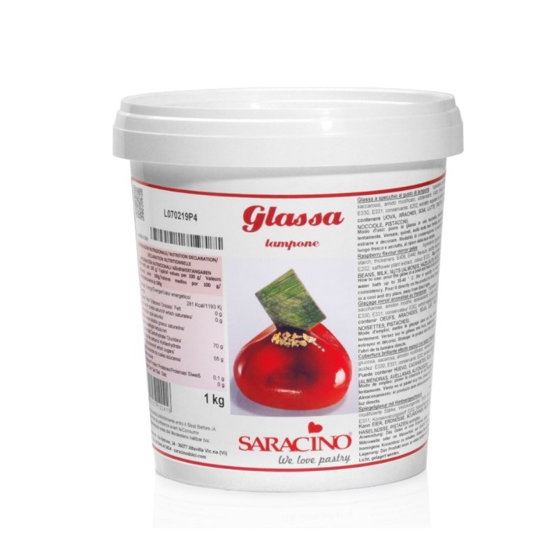 Una glassa a specchio al gusto lampone, pronta all'uso e facile da utilizzare, dal colore brillante intenso e dal gusto dolce.