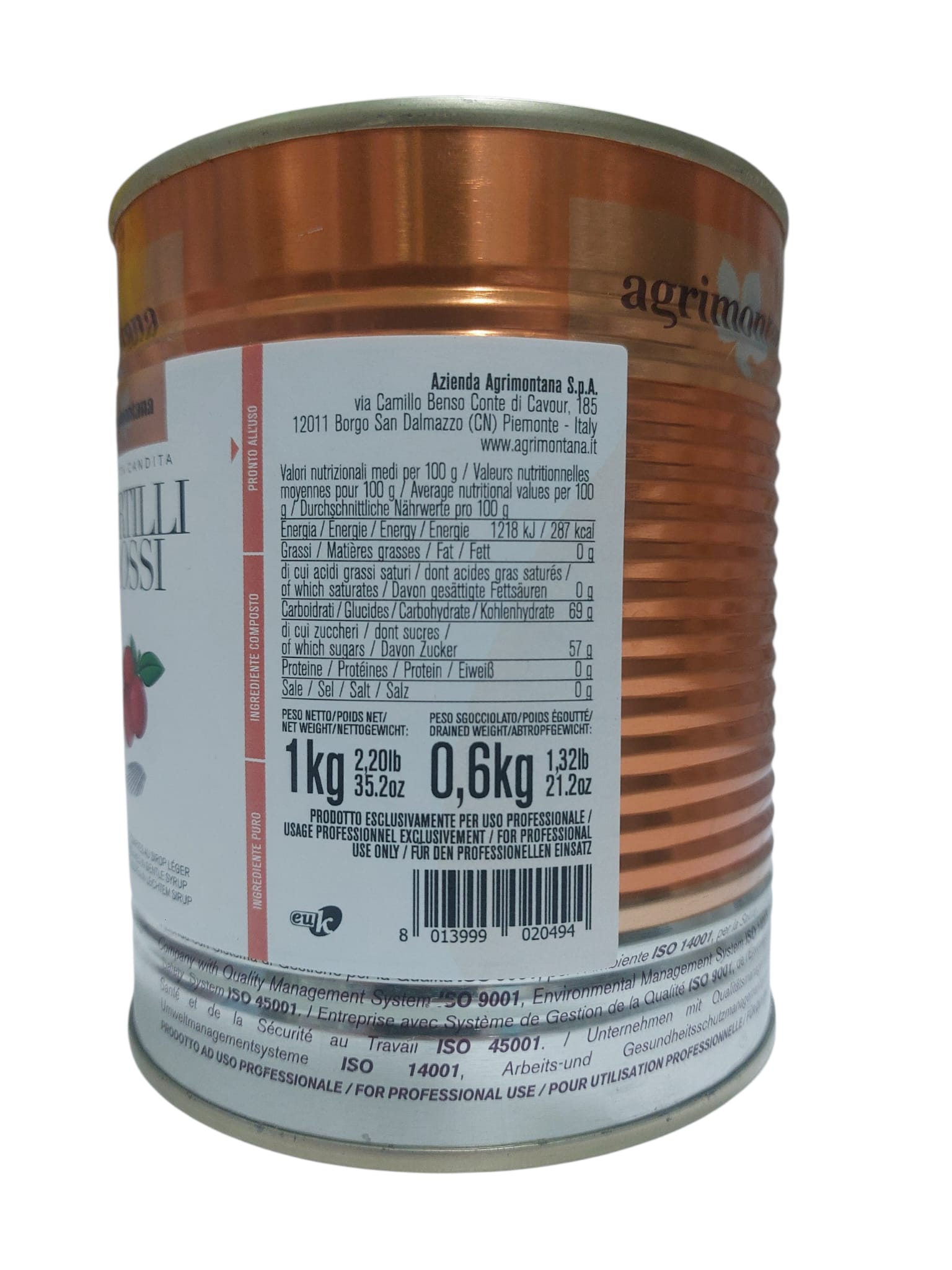 Mirtillo Rosso In Sciroppo Leggero Agrimontana 1KG