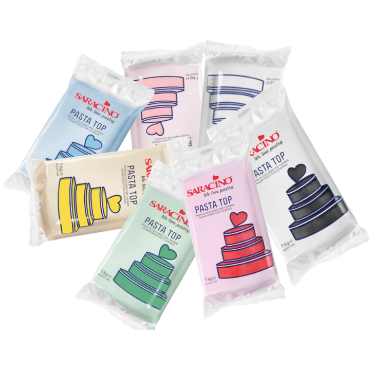 La Pasta Top è una pasta di zucchero creata per ricoprire torte ,si tratta di un prodotto molto elastico non crepa sopporta molto bene variazioni di temperatura senza trasudare umidita. E' adatta a climi caldi e umidi regge temperature di 35°ed elevati livelli di umidita, con perfetta resa sulle torte. Per aiutarsi nella lavorazione della pasta Top è possibile usare amido di mais, oppure zucchero a velo il più consigliato marchio Cake Love.