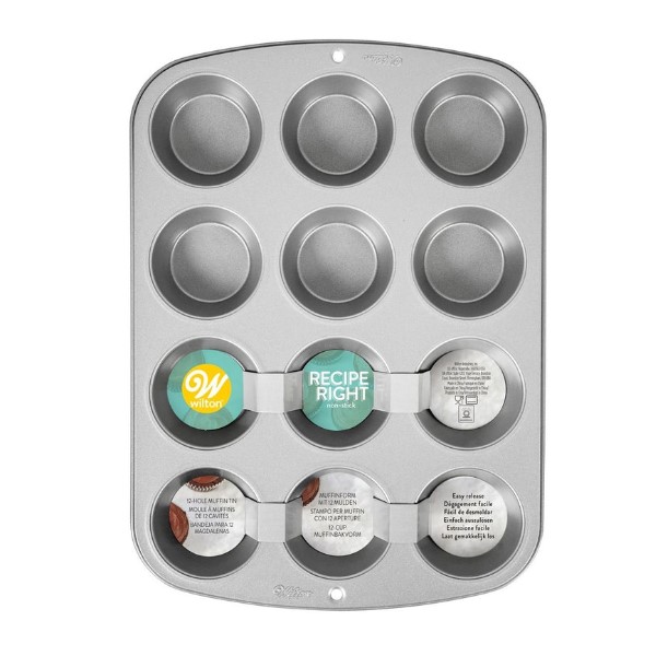 Formidabile teglia a marchio Wilton per cuocere fino a 12 muffin alla volta. Il suo design efficiente e robusto favorisce una distribuzione uniforme del calore ed evita che i dolci si deformino durante la cottura. Si consiglia di utilizzare carta forno o spray antiaderente