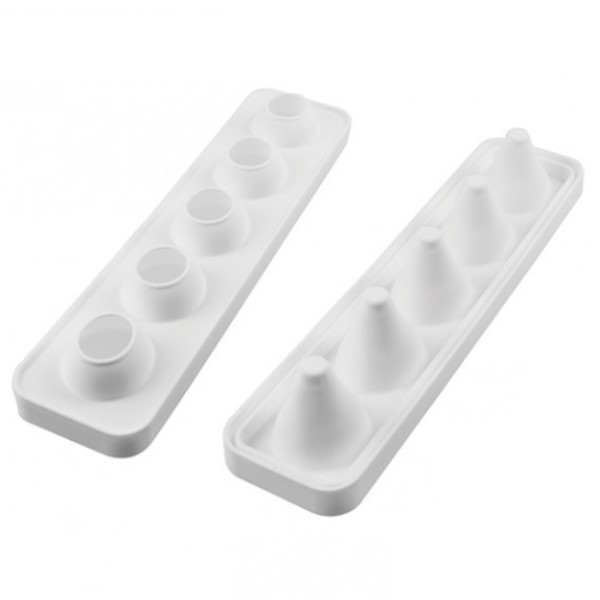 La freschezza e la naturale bellezza della frutta viene esaltata da Pera e Fico di Silikomart Professional. Il kit è composto da uno stampo in silicone con cinque cavità da 115 ml ciascuna e da un pratico supporto in plastica per una perfetta tenuta in fase di preparazione. Pera e Fico ricreeranno in modo realistico e sorprendente i due diversi frutti secondo la nuova frontiera 3D.