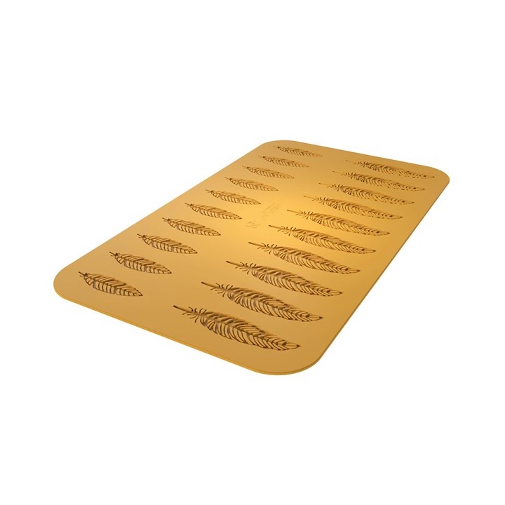 Piuma presenta due forme diverse in un unico stampo. Il tappetino può essere utilizzato sia con la "pâte à cigarette" che con il cioccolato per creare decorazioni eleganti e raffinate. Le decorazioni possono essere preparate in anticipo e sformate all'occorrenza. Sono utili per decorare primi e secondi piatti, per creare originali aperitivi o per dare un tocco raffinato ai dessert al piatto.