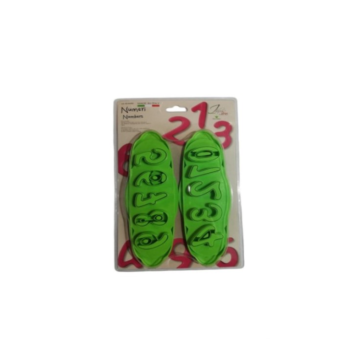 Il kit include stampi numeri dallo 0 al 9 con esplulsori. Set da 2 pezzi. Ogni numero realizzato è da 38x46mm