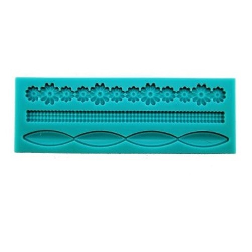 Stampo in silicone per realizzare 3 diversi disegni di bordi per torte in pasta di zucchero.
