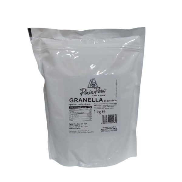 Zucchero in granella da 1 kg. Zucchero in granella è ideale per la decorazione di dolci, croissant, biscotti, torte, muffin, brioches, pane dolce, focacce dolci; ma non solo, utilizzabile anche su panettoni e colombe .